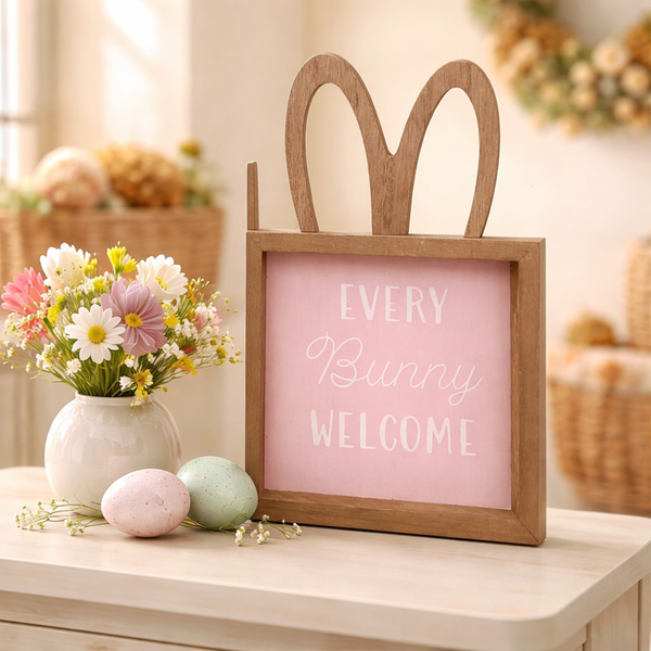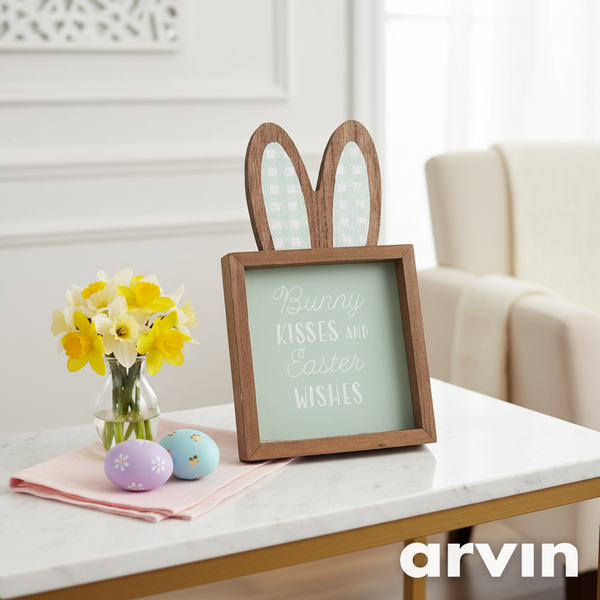 Standing Square Wooden Easter Sign with 3D Rabbit Ears